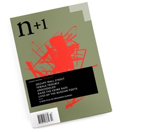 I’ve read eleven of the thirteen print issues of n+1 cover-to-cover, and for the most part I’m glad I did. But if you already suspect that n+1 is a magazine with its head up its own ass, you can cite the current issue as evidence. Keith Gessen and Benjamin Kunkel peel off a few pages from their works-in-progress (a translation of an essay on Russian poetry, and a play about a Benjamin Kunkel type, respectively), the editorial staff goes gaga for Occupy Wall Street (“Everything felt so real at that moment—our position within this greater structure thrown into ecstatic relief.”), and, in true n+1 fashion, a series of aspirants and outsiders, who seem to believe that a first-rate undergraduate education is all the intellectual preparation one needs in order to master the universe, offer dry remarks on high culture, their voices wet with envy. This issue contains an essay by James Franco that wasn’t even written by James Franco. The would-be saving grace is a piece by associate editor Christopher Glazek that synthesizes much of the recent literature on the prison crisis in the United States, and argues for the abolishment of our entire system. But there is much better stuff being published directly on n+1’s web site, which perhaps confirms that n+1 has become more of a brand than a magazine.